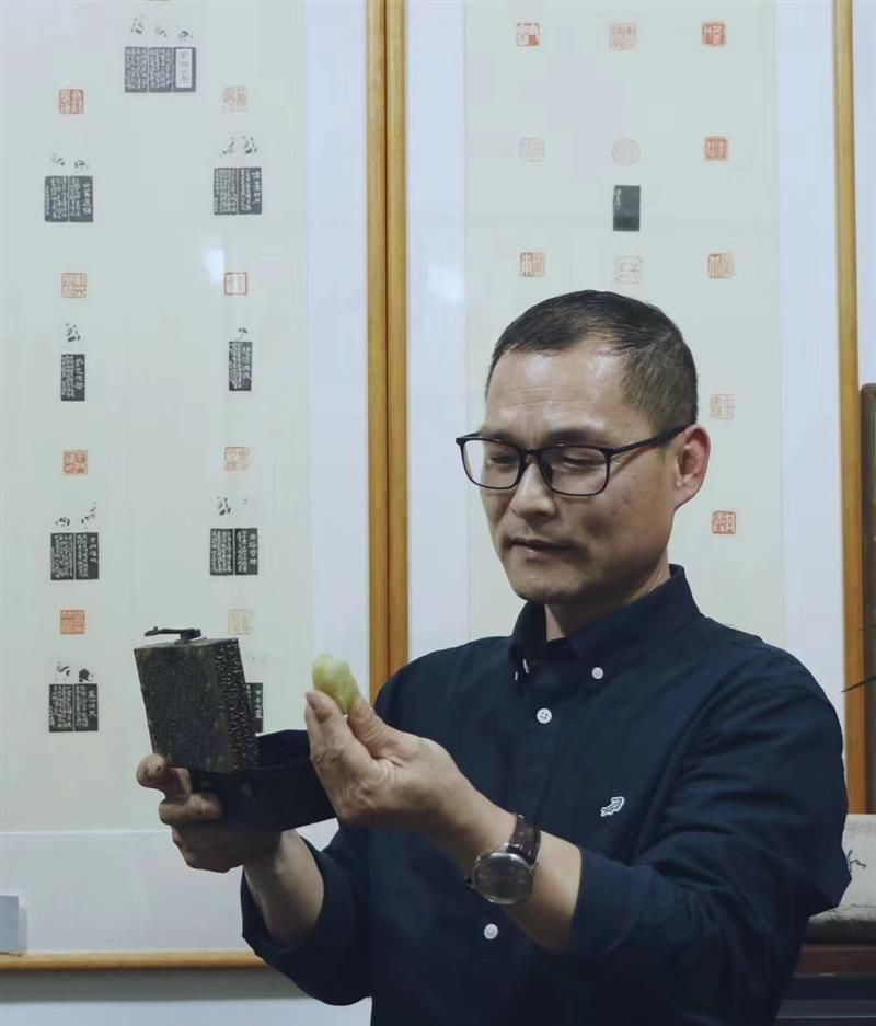 渐渐地,他在圈内小有名气,找他篆刻的也越来越多。据不完全统计,这么多年来,他刻的篆刻作品已达700多方。