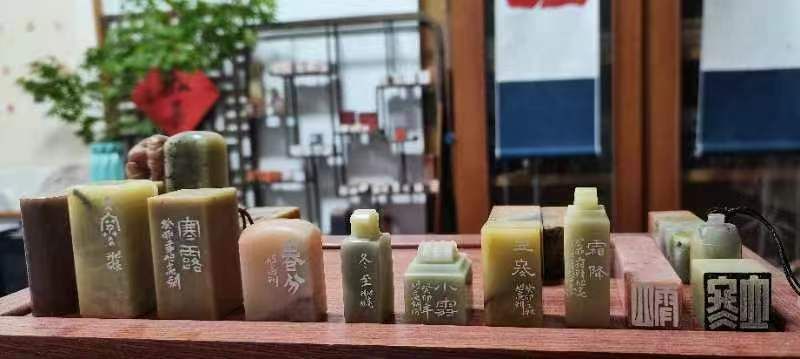 今年,他又将篆刻与生活相结合,鼓捣创作二十四节气印,目前已陆续刻了10来个节气印,特色鲜明。如“大雪”的节气印,他就寻思着在印上刻了很多小点点,涂上印泥,印在纸上,瞬间就有一种雪花飘飘的美感。
