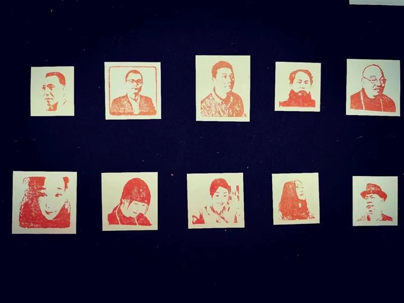 马旭亮说,最难的还是做肖像印。在方寸之间的石头上刻人物,表情很难拿捏,很容易崩裂。他于是用自己的肖像来作试验,不断调整,直至炉火纯青。他印章上刻的一系列人物肖像,见过的人都说刻得惟妙惟肖,很快就能猜出印中人是谁。